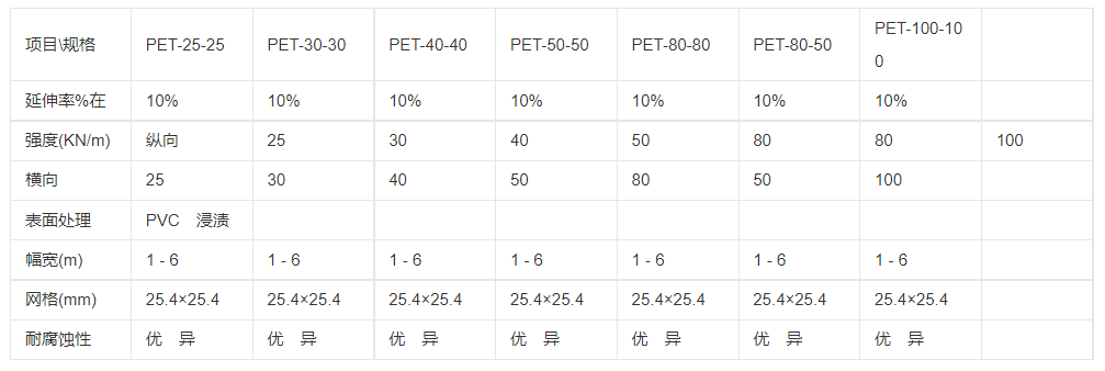 聚酯经编涤纶土工格栅采用高强度涤纶工业长丝,经过经编定向织造网格坯布,经PVC涂覆加工成土工格栅。应用于软土地基处理和路基、堤坝等工程的加筋,以提高工程质量降低工程造价。